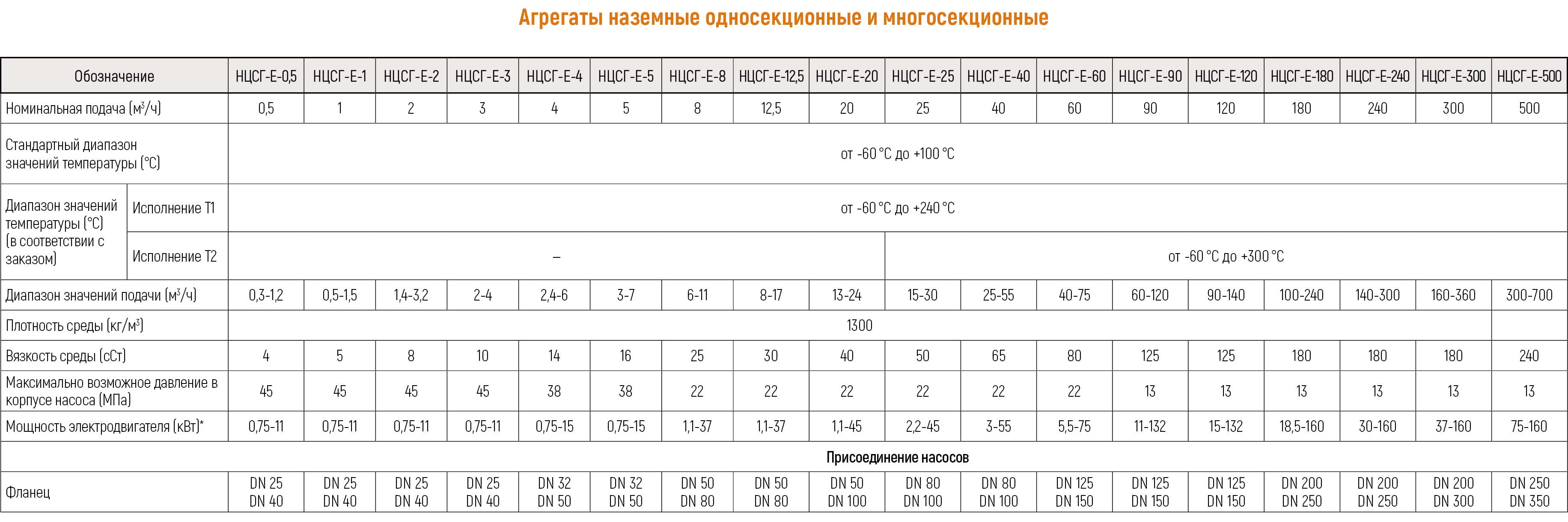* Для многосекционных насосов количество двигателей в одном агрегате будет равно количеству секций.